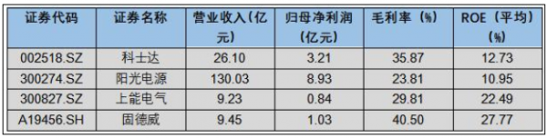 與可比上市公司2019年部分財務指標對比如上,可以看出,因固德威的產品主要面向家庭戶用和工商業領域市場,與行業內上市公司相比應用范圍偏小,因此導致銷售規模較小。而毛利率水平高于可比上市公司均值,上能電氣(43.99 +1.78%,診股)逆變器主要為集散式逆變器,功率較大,且其下游客戶通常進行集中采購并公開招標,產品銷售價格相對較低。科士達(15.91 +4.53%,診股)逆變器產品種類較多,因此綜合毛利率存在差異。陽光電源是行業的龍頭企業,主要產品包括光伏逆變器、風能變流器、儲能系統、新能源汽車驅動系統、智慧能源運維服務等,規模較大,綜合毛利率相對較低。固德威產品以組串式逆變器為主,產品集中度高,毛利率也相對較高。