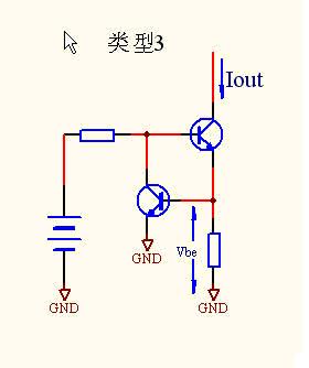 類型3,這是用晶體管代替運放的電路,由于使用晶體管的Vbe(約0.6V)替代Vref的電路,因此,Vbe的溫度變化毫無改變地呈現在輸出中,從而的不到期望的精度